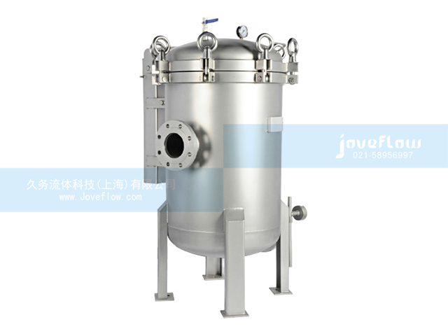 液體從過濾器進口流入濾袋,大于過濾孔徑的雜質(zhì)顆粒被攔截于濾材的內(nèi)表面或中間,液體自內(nèi)向外透過濾袋在出口匯聚流出,當濾袋上的雜質(zhì)積聚形成濾餅并使壓差達到0.05-0.1MPa時,更換堵塞的濾袋后,然后可繼續(xù)工作。
