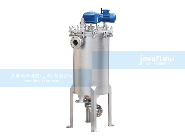 液體從過(guò)濾器進(jìn)口流入,自上向下流動(dòng), 透過(guò)濾元表面流向出口;當(dāng)濾元表面收集到一定量的雜質(zhì)時(shí),電機(jī)或者氣缸驅(qū)動(dòng)緊貼濾元表面的刮刀運(yùn)動(dòng),刮除雜質(zhì)。雜質(zhì)隨下行液體聚集在底部收集腔,當(dāng)雜質(zhì)累積到一定量時(shí),打開(kāi)收集腔處的排污閥,將含高濃度雜質(zhì)的液體排出,排出殘液可回收或排放??啥〞r(shí)或按壓降開(kāi)啟過(guò)濾器清洗和排污程序。